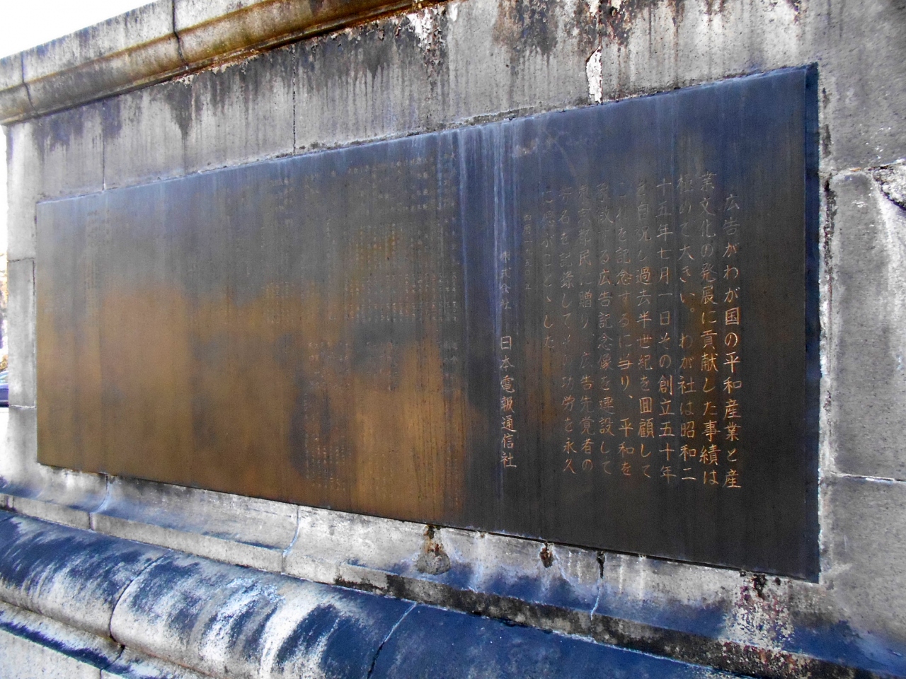 - 偶然に見つけた像ですが、その立派さに「さすが電通!」という思いと、「なぜ、こんな場所に?」という疑問がわきました