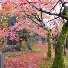 葉っぱが落ちた木もありましたが、見ごろだったのであちこちが赤く染まっていました。