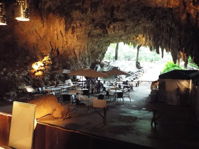 天然の洞窟にあるカフェ。けっこう広い空間でコンサートイベントなんかもやるらしい。道路を挟んで向かい側の玉泉洞よりはオープンエアな感じだが、それでも、ここが鍾乳洞であるので、ひんやりした感じがする。空間を楽しむところなので、ドリンクやフードは期待してはいけない。