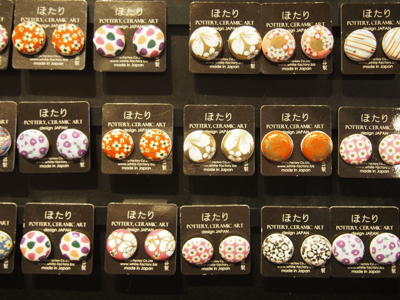 最近はどこにいても全国各地のものが手に入りますが、やはりその場所に出向かないと手に入らないものもあります。特に京都はその傾向が強いように思います。写真はカフスかと思ったら、なんと陶器のイヤリングでした。