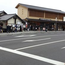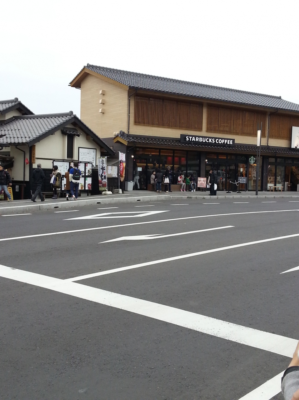 出雲大社の入口に、一際目立つオシャレな建物があり、そこがスターバックスコーヒーでした。ほとんどの人が立ち寄っている感じがしました。福岡県の太宰天満宮にあるスタバ同様、景観を合わせられていてとてもオシャレです。