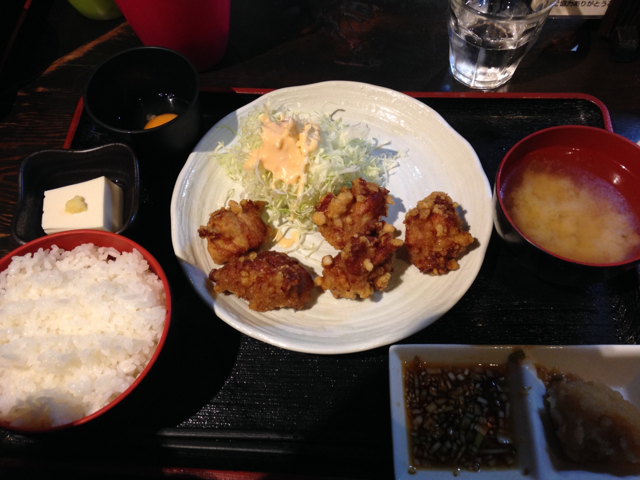 ランチメニューから,若鶏の唐揚げ食べ放題定食にしてみました。