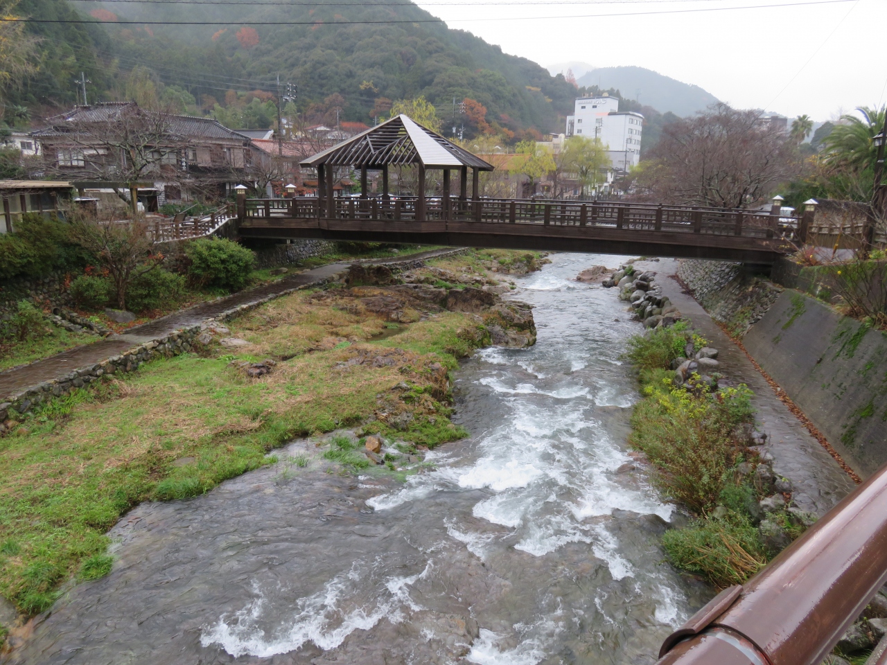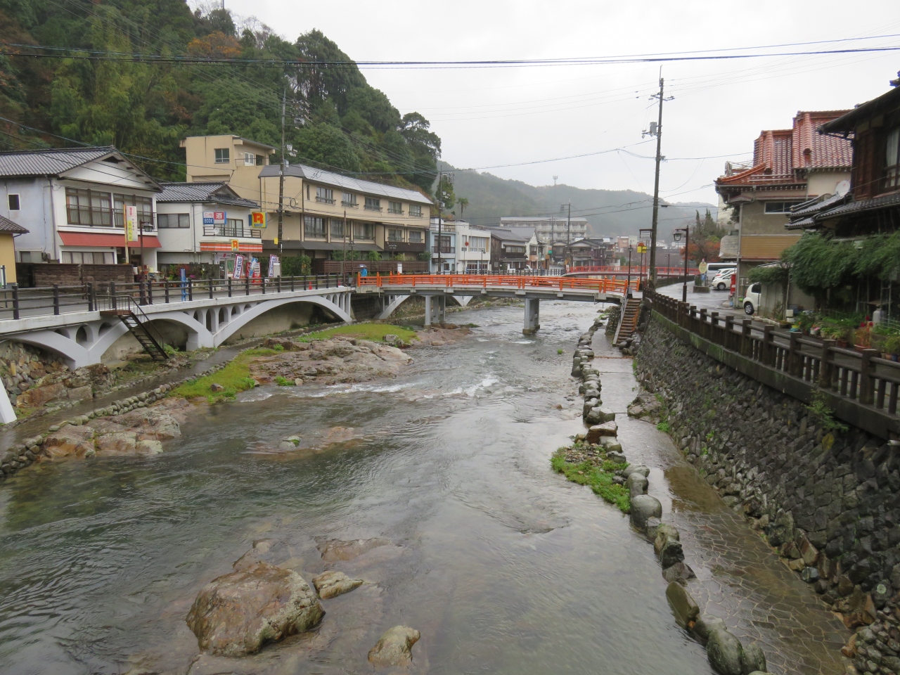 そこを出て、しばらく音信川のそばを散歩する。小雨模様だったが、落ち着いた雰囲気で好ましい。さらに、その後、古いほうの恩湯にも入った。こちらも200円で利用できる。ロッカーは百円。こちらは、そう熱くないので、ゆっくり入っていられる湯だ。