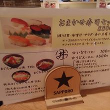 JR札幌駅から地下で直結、便利なところにあります。北海道農業の総本山、北農ビルの地下一階にあります。他にも、道産小麦を使ったラーメン店など北海道の農産物を使ったお店が数多く入っています。この寿司屋さんは、安くておいしかったです。しかし、昼でも満席にナならず不思議です。お弁当も売っているので、それを買って帰るOLが多かったです。ランチを注文しましたがネタも新鮮で満足です。ただ、寿司屋なのにお茶が出てこないで水でした。見ると他の客のお茶ではなく水。すし屋ならランチでもお茶でしょう。そこが残念でした。