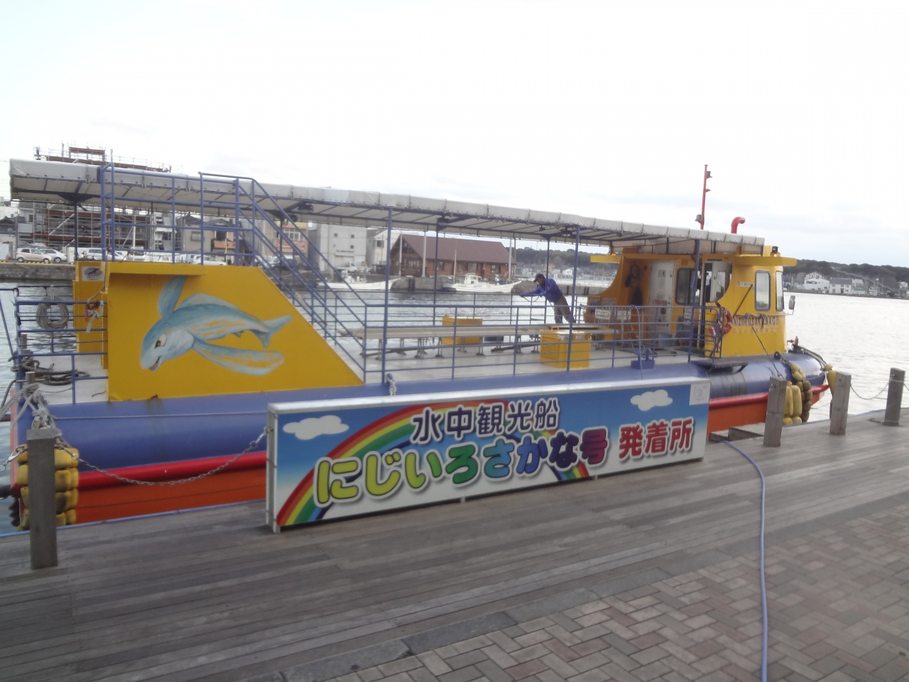 みさきまぐろきっぷで利用しました。三崎漁港から出航し、40分程で戻ってくる水中観光船です。出航して10分程でポイントに到着。そこでしばらく停泊します。そしてここが魚をウオッチするスポットとなっています。船の下層部が潜水状態になっていて、窓からたくさんの魚を見ることができます。更には船上では魚の餌を撒くことが出来、魚が集まる要因にもなっています。船が運航している行きと帰りは下層部に見ても窓からは泡しか見せないので、その時は船上にいてカモメのエサ(有料)を買ってカモメと遊びましょう。