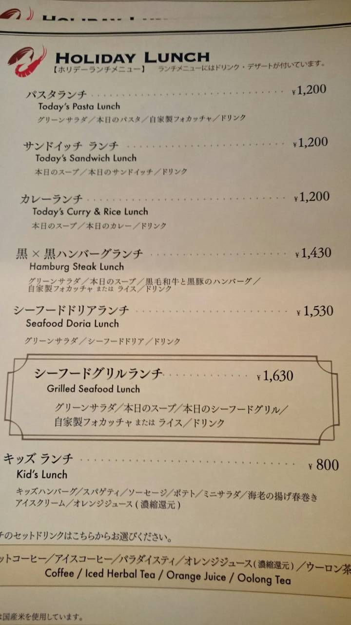 本日はハンバーグlunchとシーフードlunchを頂きました。