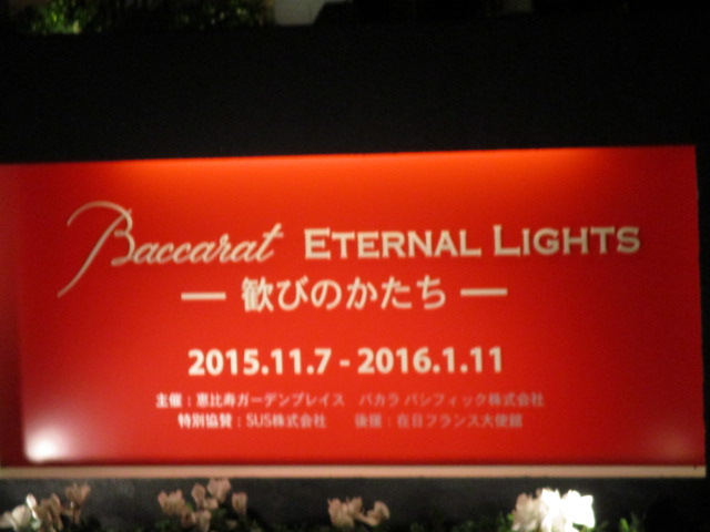 普段はそんなに混んでいない恵比寿ガーデンプレイスですが、この時期は沢山の人出でとても賑やか。センター広場にバカラシャンデリアがきらめく中、歌のパフォーマンスで盛り上がっていました。クリスマスイルミネーションがとても素敵。暖かな気持ちになりました。この時期、用事を作って、食事でも、買い物でもよいですから、ガーデンプレイスに行きましょう。「Baccarat ETERNAL LIGHTS(バカラエターナルライツ)」開催中・・