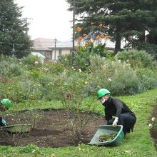 来年春には見違えるほどのバラを見ることができるでしょう。2名の庭師は若い女性でした。“花咲きお嬢さん”でしょうか?