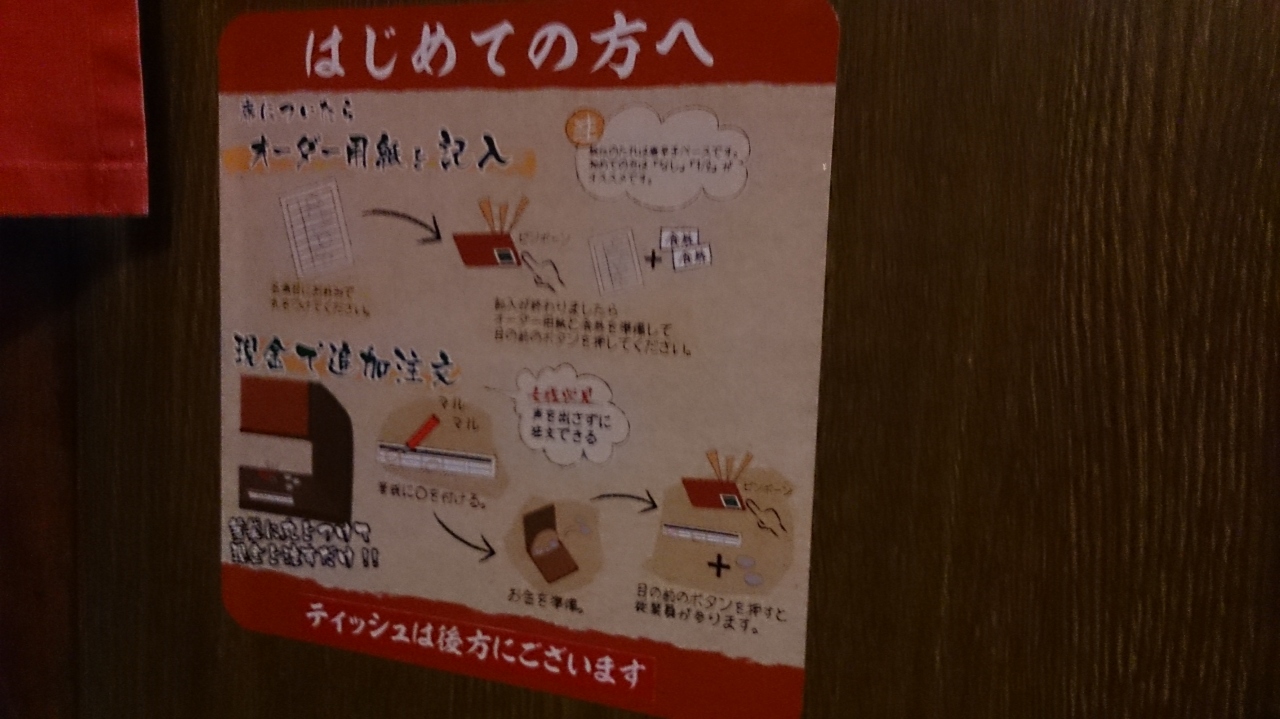 平日の夕方4時過ぎに訪問しました。他のお客さんは5人ほどで空いていました。席間の仕切り・席前ののれんなど独特のシステムは本当に快適。周囲を気にせずラーメンを堪能できます。席ごとに給水機があるのも嬉しいです。『秘伝のたれ』初めての方は1/2にすることをオススメします。