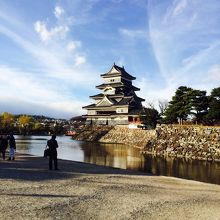 お濠の対岸から見上げる松本城はとても綺麗ですね。