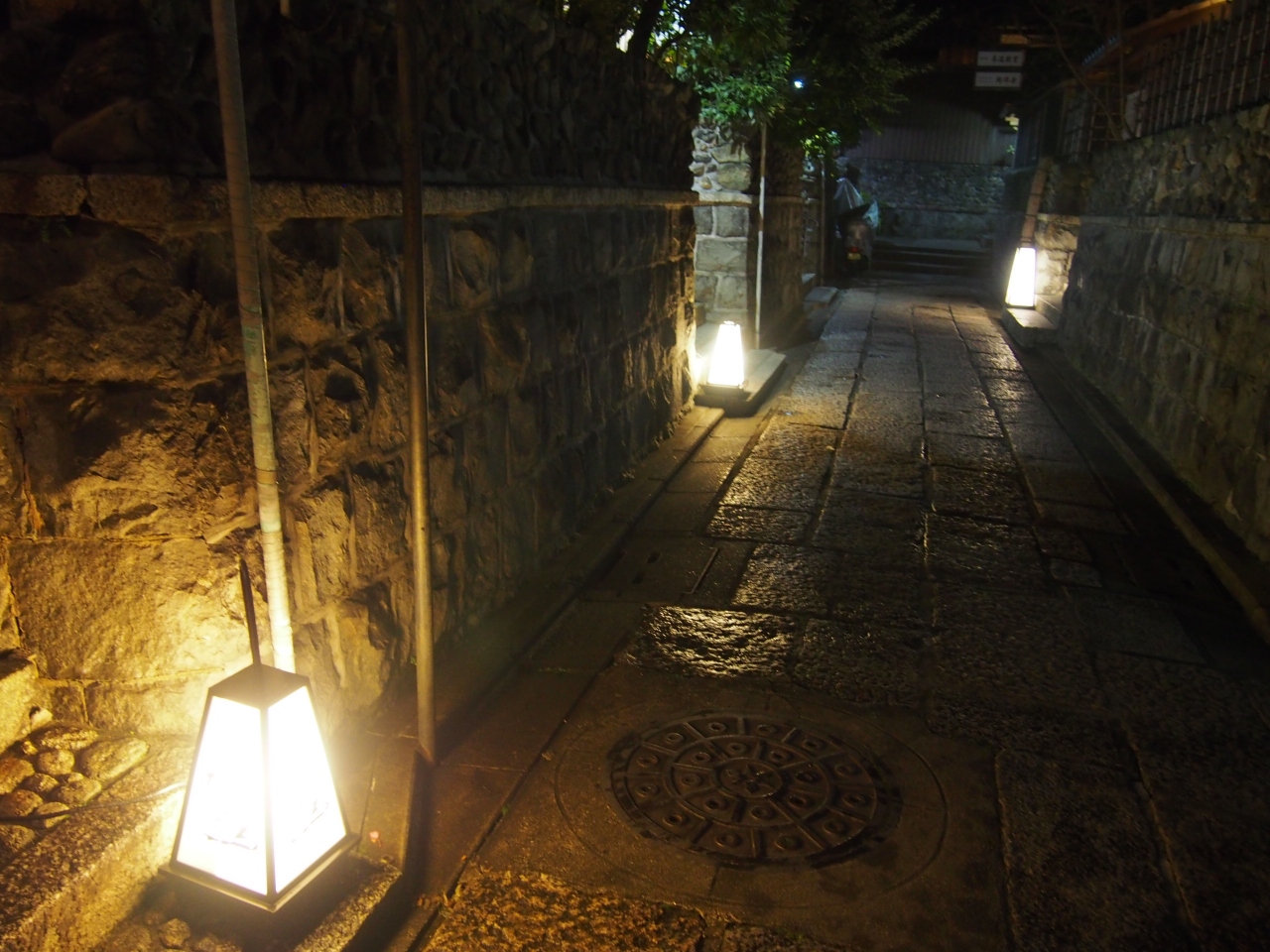 京都は細い路地が多く、そこが通ってよい道なのかどうかわからない場合がありますが、勇気を出して足を踏む入れてみれば、喧騒とは無縁の世界が広がっていたりします。ねねの道や四条通は、お祭りのようでしたが石塀小路は寂しいくらいに誰もいませんでした。