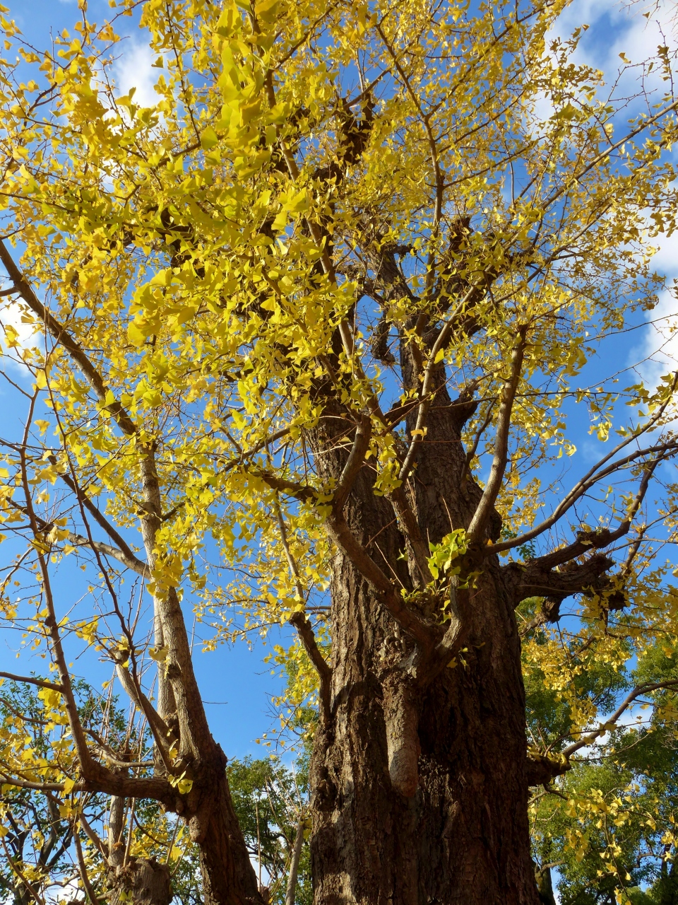 狭い境内ですが樹齢が約500年と推定される御神木の公孫樹や幇間塚碑があります。
