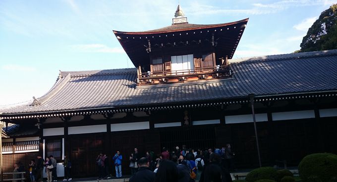 洗玉澗渓谷に架けられた通天橋を渡らないと開山堂には行けません。開山堂へ向かう参道の右手には池泉式庭園、左手には市松模様の枯山水庭園があります。参拝後は普門院の方へ回ると、二つの庭園を同時に眺めることができます。座れるスペースもありますのでゆっくり鑑賞できます。