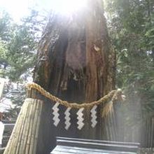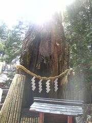 日光東照宮の奥社にある家康のお墓の近くにあり、樹齢600年のご神木にはしめ縄がされており、木の中が腐って空洞になっている感じでした。どうもパワースポットらしく女性の方々が列をなしてお参りする順番をまっていました