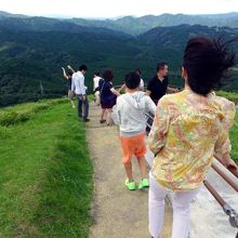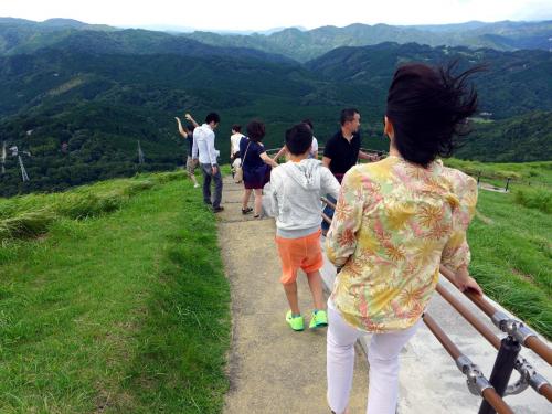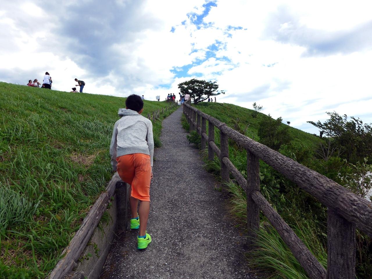 いつも強い風が吹く山頂ですが、綺麗に整備された遊歩道の強風ポイントには手すりがついていて安心です。