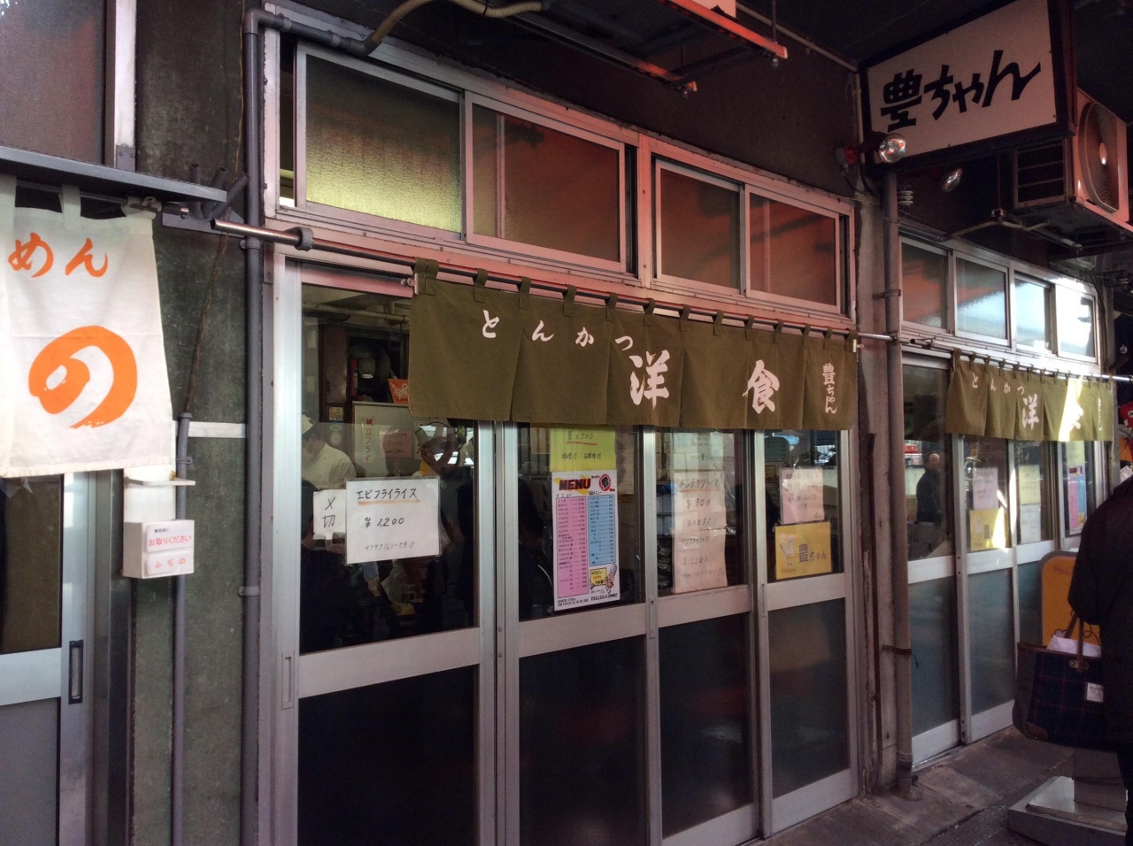 築地駅から徒歩5分くらい、築地市場内にある洋食屋さんです。7、8軒ほど店が並んでますが行列が無かったので入店。カウンター席のみで10席ちょっと。カキフライ定食に魅かれるが値段を見て尻ごみ。結局、“ロースかつライス”を注文。洋食屋らしいカツレツのような感じ。定食ではないので味噌汁無しなのでコスパ的にイマイチ。でも美味しかったです。カツカレーが人気のようでしたが。900円也。