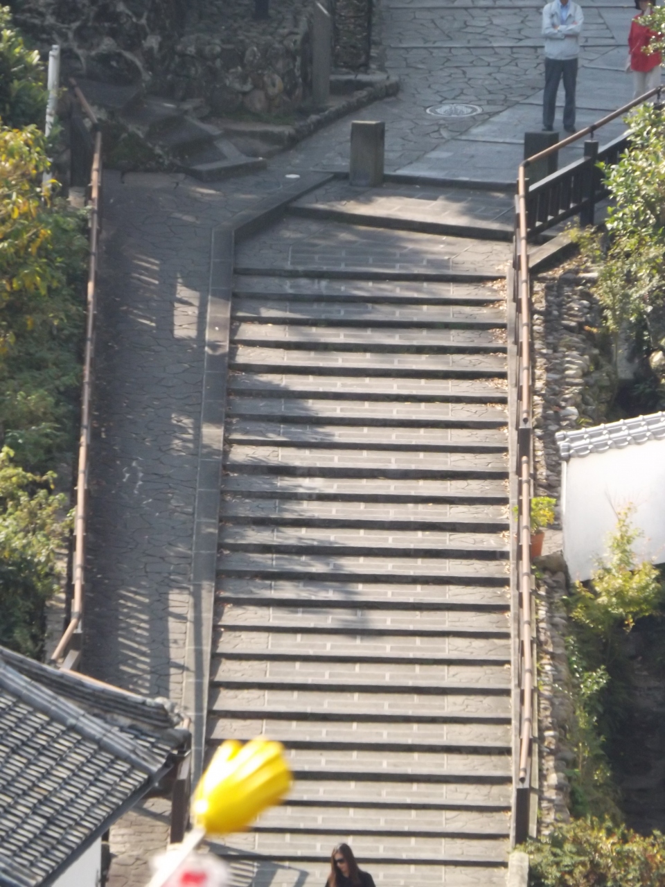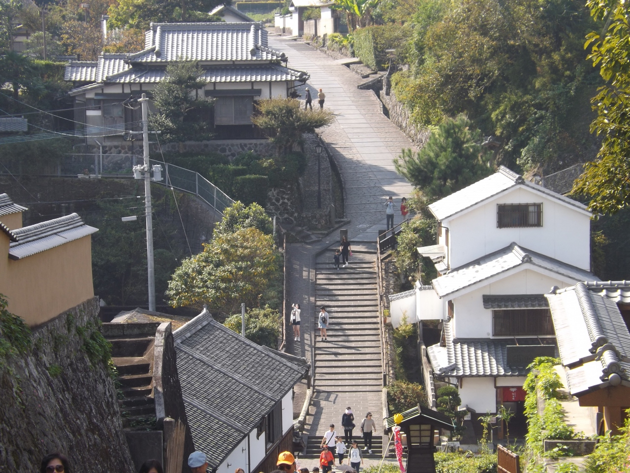 酢屋の坂を下りるとすぐに志保屋の坂(しおやのさか)が続いていました。大原邸から見ると酢屋の坂が下りで、志保屋の坂が上りとなります。この2つの坂は続いている坂なんです。勿論、酢屋の坂を下りなかったので、志保屋の坂も歩きませんでした。下から観光バスのガイドさんが10人くらい連れて上がって来ましたが、しんどそうな感じでした。この町には、坂がありすぎです。