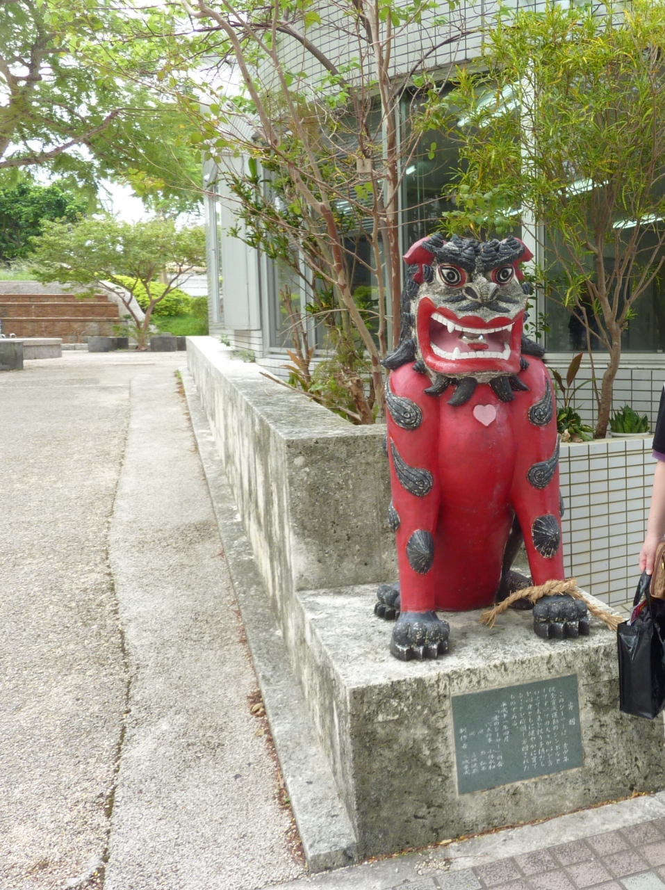 - 噴水に囲まれたシーサーと入り口の赤いシーサーの他、記念碑等があります
