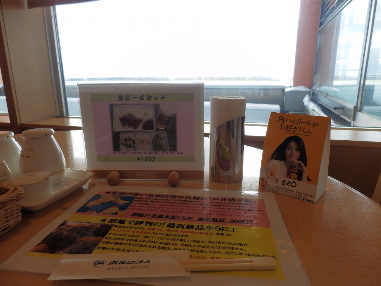 函館空港ビルの3階にある、食事をしながら展望も出来るレストランです。函館空港自体が閑散としているので、このレストランも空いていました。