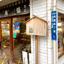 二の橋北詰近くにある、安政元年創業のお茶の老舗店です。特に良質産地の上級茶葉を使って独自のレシピでプレンドした上級茶「両国銘茶」や、両国らしいネーミングの玉露風味の「相撲番茶」などの人気商品があります。