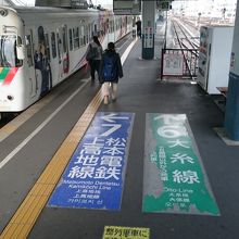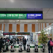 長野県の第二の都市、松本市の中心駅であり、松本城や浅間温泉なと観光地の最寄り駅です。また、上高地や乗鞍への玄関口ともなるアルピコ交通(松本電鉄)上高地線に乗り換えることもできます。篠ノ井線と大糸線、上高地線が乗り入れており、大糸線と上高地線の起点でもあり、塩尻から篠ノ井線を経由して、東京へは特急あずさ号、名古屋方面へはしなの号をはじめ、中央東線、中央西線が乗り入れており、中央線と案内されます。熱海なとと同じく、JR東日本とJR東海の車両を見ることができます。長野駅に比べて規模は大きくありませんが、駅ビルとして「MIDORI」が直結しているほか、駅前には松電バスターミナルと併設された「アリオ」があり、少し歩けば、「井上百貨店」や「PARCO」もあるので便利です。改札口は上高地線を含めて一ヶ所です。