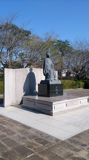 鹿児島県歴史資料センター黎明館の前の非常に目立つ場所に設置されています。平成20年にNHKの大河ドラマで篤姫が放映されたのを契機に銅像制作機運が盛り上がり設置されたので、銅像としては真新しいです。御影石の4畳ほどの台座にさらに、黒御影の台座があり、その上に等身大に近いサイズの腰かけに座ったスタイルの篤姫像は、背筋を伸ばし真っ直ぐと正面を見据えて造られており、きりっとした感じの風格のある銅像だと思います。鶴丸場跡の黎明館前ということで、これとあわせて訪問する感じのスポットだと思います。