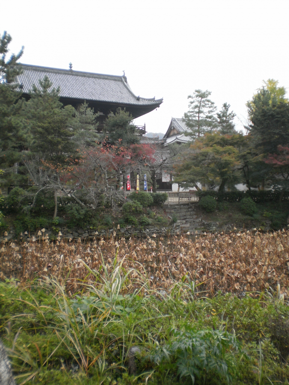 京阪電車宇治線の黄檗駅から徒歩数分にあるお寺です。日本風の寺院と中国風の寺院のあいだみたいな建物が興味深いです。うしろに小山があるせいか、どこかのんびりした感じがいいです。11月の三連休に訪れたけどあんまりこんでいませんでした。