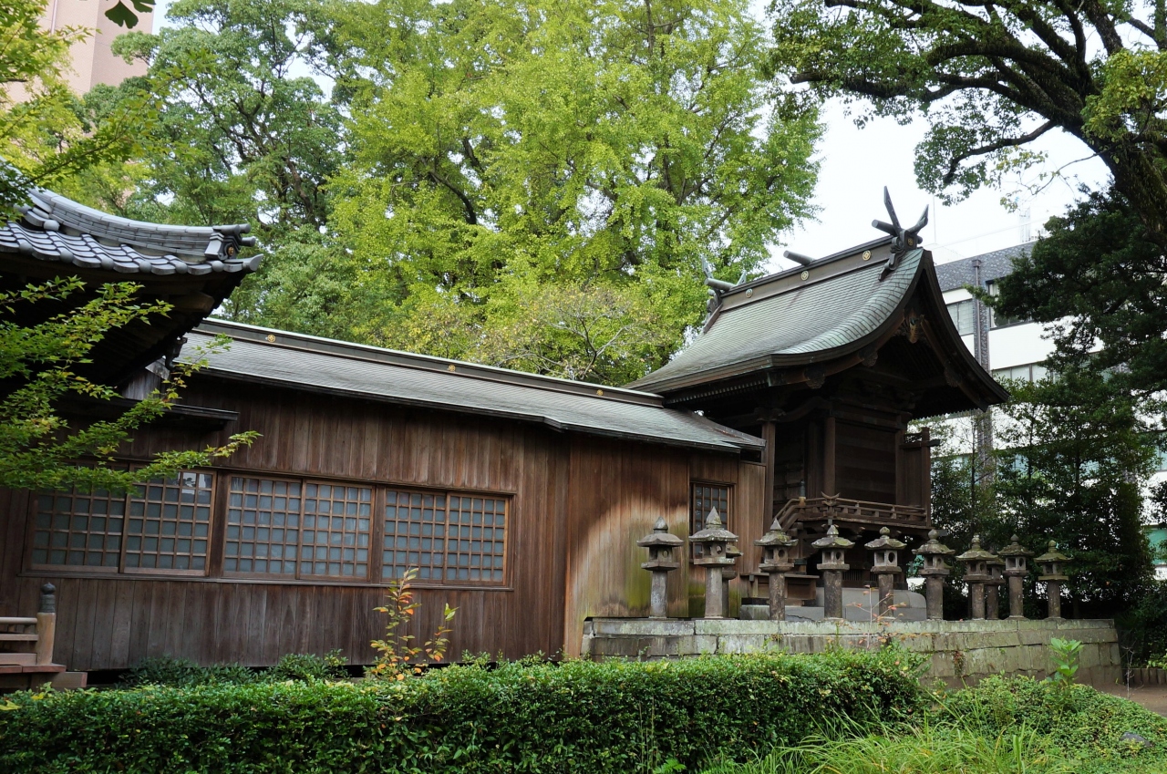 松栄神社は府内城の山里丸跡に鎮座、廊下橋を渡った所にあります。