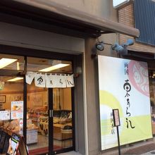 葛飾北斎生誕の地であることでも知られている、北斎通りにある老舗あられ店です。なので看板商品は北斎揚げというおかきで、塩味と醤油味のパッケージは北斎の富嶽三十六景