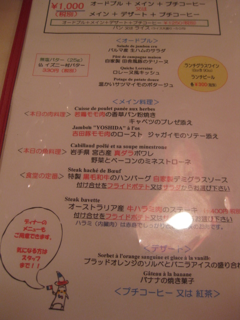 歌舞伎座の裏。赤のチエックがかわいいビストロ。ランプシェードまで赤のチェックで店内装飾もかわいい。女子が大好きな雰囲気。この日のランチタイムは女子が9割でした。私が頼んだ鶏モモ肉はすごいボリュームなので、スタッフに尋ねるとなんと一人分で200gもあり、焼き加減が絶妙で完食しましたが、お土産にテイクすればよかった位。前菜に選んだキッシュも美味しかった。