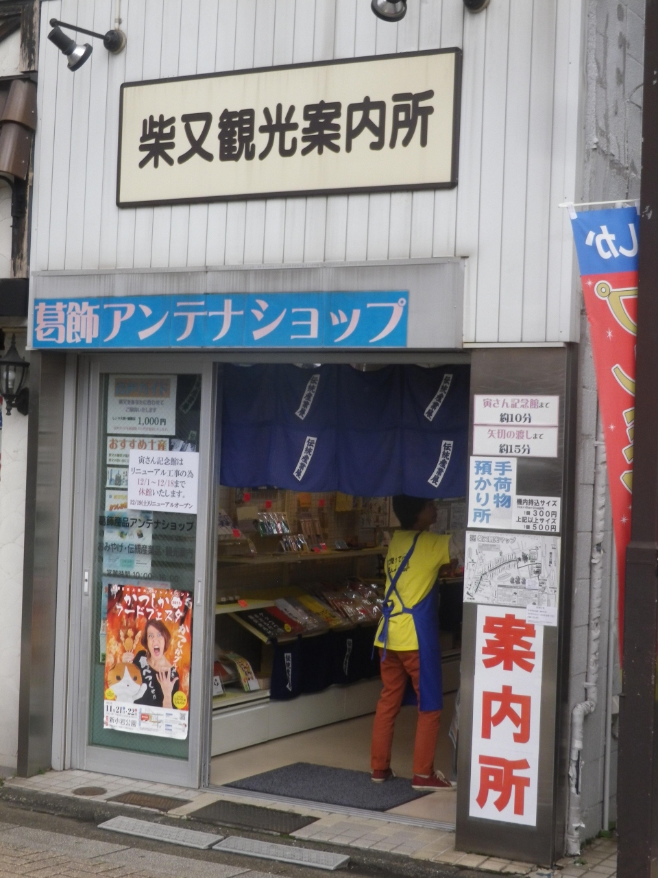 京成金町線の柴又駅前にある小さな観光案内所です、フーテンの寅像が前にあります、案内所内には柴又周辺や葛飾区内の観光パンフレットが置いてあります、又、ちょとしたお土産も扱っています、スッタッフがいますので柴又周辺のこと聞くことが出来ます、ここから帝釈天参道へ向かえます。