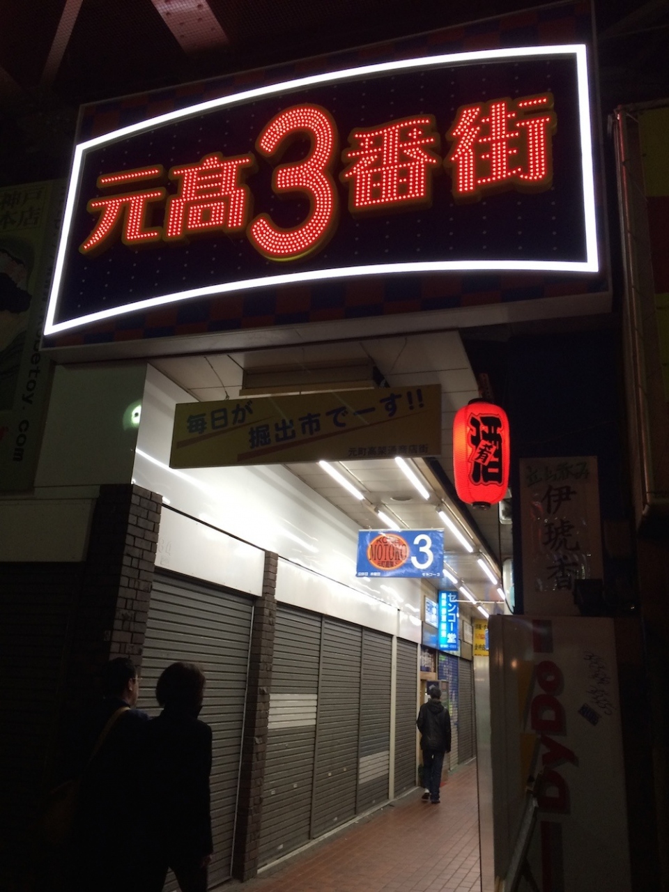 シャッター街になりつつありますが、まだまだ健在元町高架下商店街。ちょっと悪そうな雰囲気が港町っぽくていいです。最近は、空いたテナント跡に若い人が飲食店をはじめていて、また、違った雰囲気の商店街になりつつあります。美味しい洋菓子店や味のあるイラストを書く方のお店もあります。