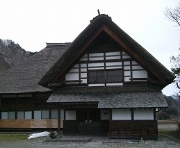 前沢曲屋集落の入口の無料駐車場にある茅葺き屋根のおそば屋です。