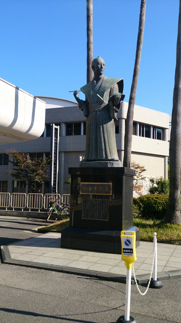 鹿児島市の宝山ホールの敷地の一画に立派な台座に等身大に近い大きさのブロンズ像が立っています。正面を照国神社の方に向けています。そもそもここへ来るまでは小松帯刀なる人物は知りませんでしたが、幼少のころから学問や武芸に秀でており、27才で家老となり西郷隆盛や大久保利通を重用するなどし、明治維新後も外交官として活躍した人物です。このブロンズ像のすぐ脇には小松帯刀を知らい人でも、簡単に小松帯刀がわかるように記された説明看板が建っています。非常に便利です。