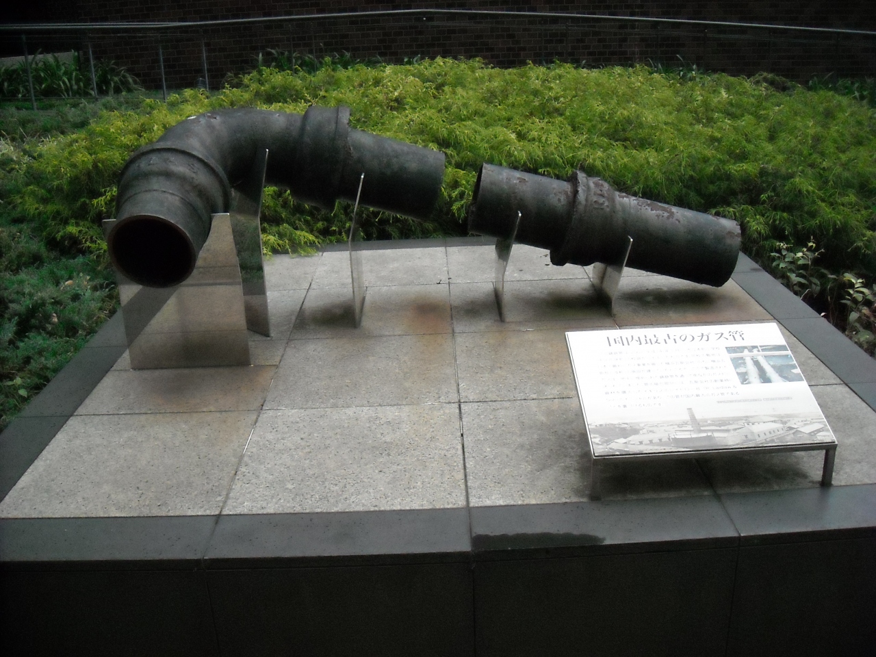 桜木町・本町小学校の場所が“日本ガス発祥の地”でガス工場が稼働していました、さてどのようにガスを製造していたかというと石炭の蒸し焼きから気体を集め管により供給してガス灯を灯していました。石炭はコークスになりタール等も採取したといいます。
