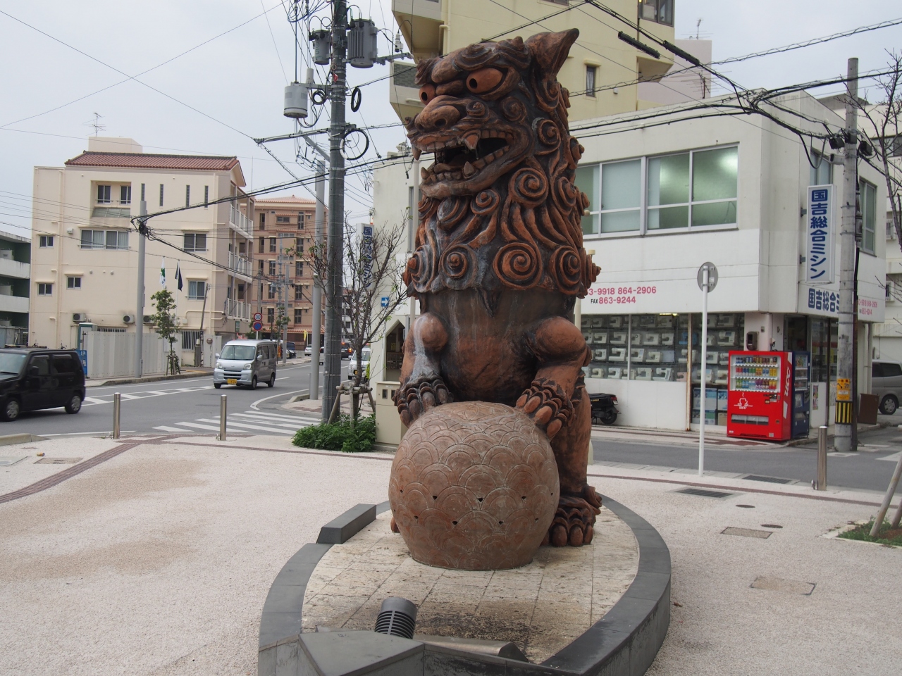 壺屋通りのシンボルとしてある壺屋焼の大きなシーサです。