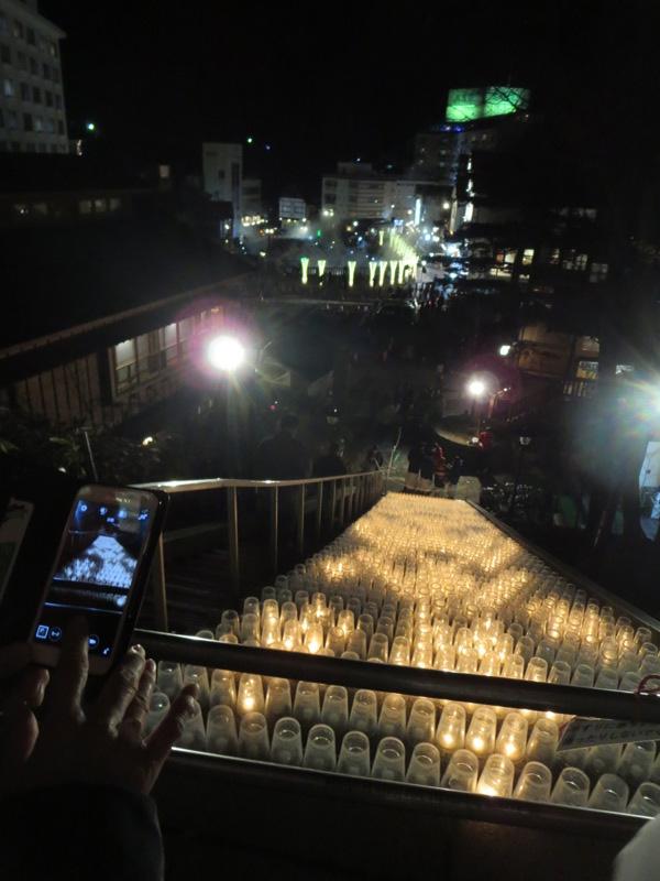 草津には毎年行っていますが、ここ何年かで湯畑の周りがきれいになり、若い観光客で活気が出てきました。泊まった晩はイルミネーションだけでなく寺の石段のキャンドルサービスもあり、一段ときれいで広場でミュージシャンの歌も披露されていました。