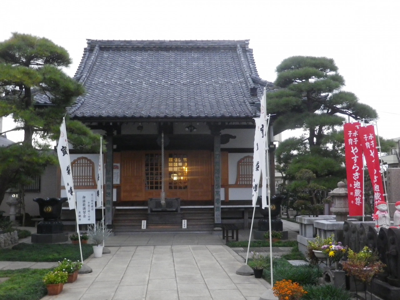 柴又七福神のひとつで和合成功の神様の宝袋尊(布袋尊)を祀っている真言宗の寺院です、場所は柴又街道沿いにある金町浄水場の前、京成金町線の線路を渡るとあります、普段は静かなお寺ですがお正月は七福神めぐりの人で賑わいます。