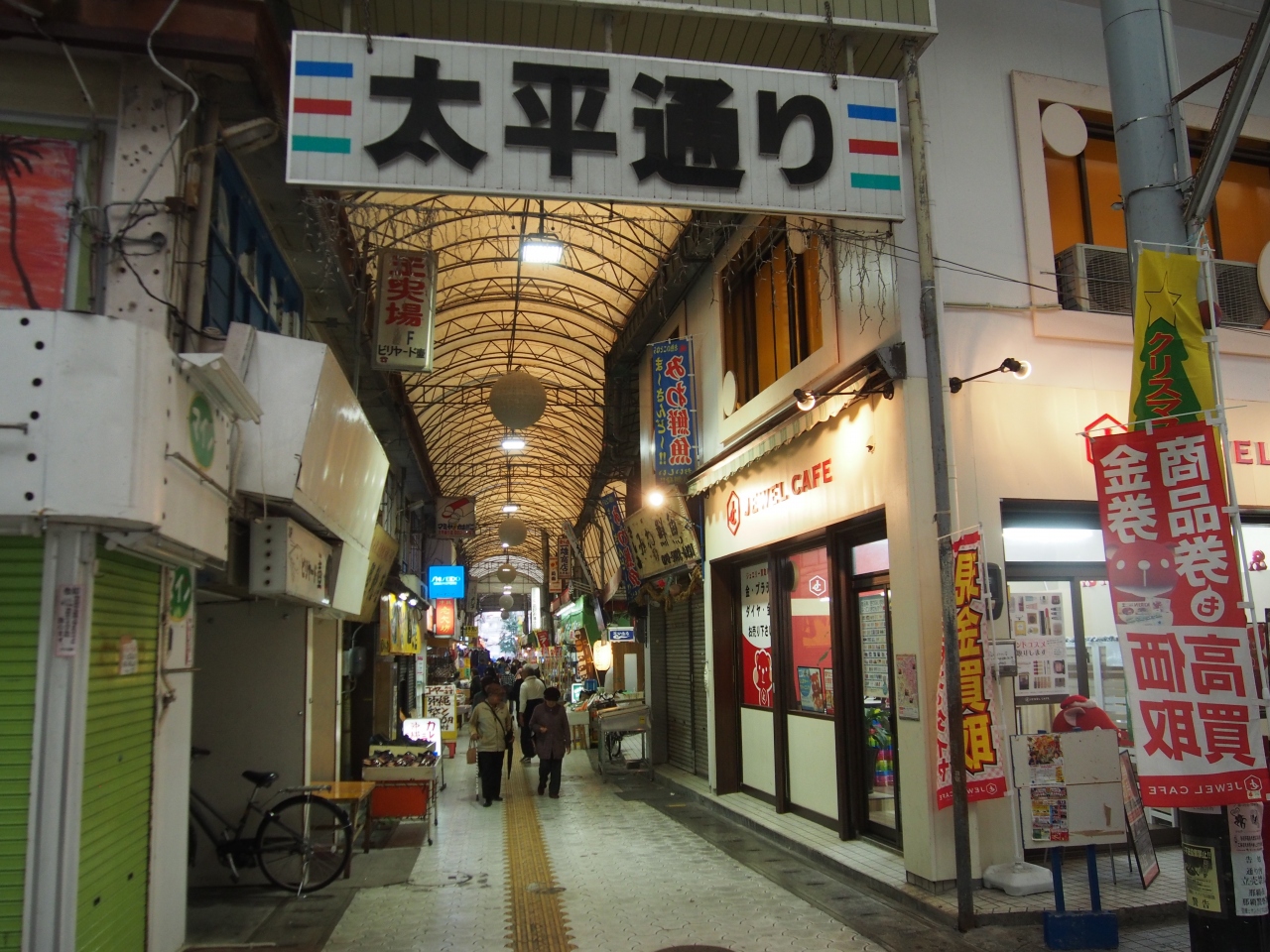 国際通りから市場中央通り、新天地通りなどを過ぎた場所にあるアーケード街です。国際通りから離れるにしたがって、沖縄らしいディープな庶民暮らしがあります。おばさんの普段着、惣菜、お弁当、雑貨などいろいろとみていて楽しいです。