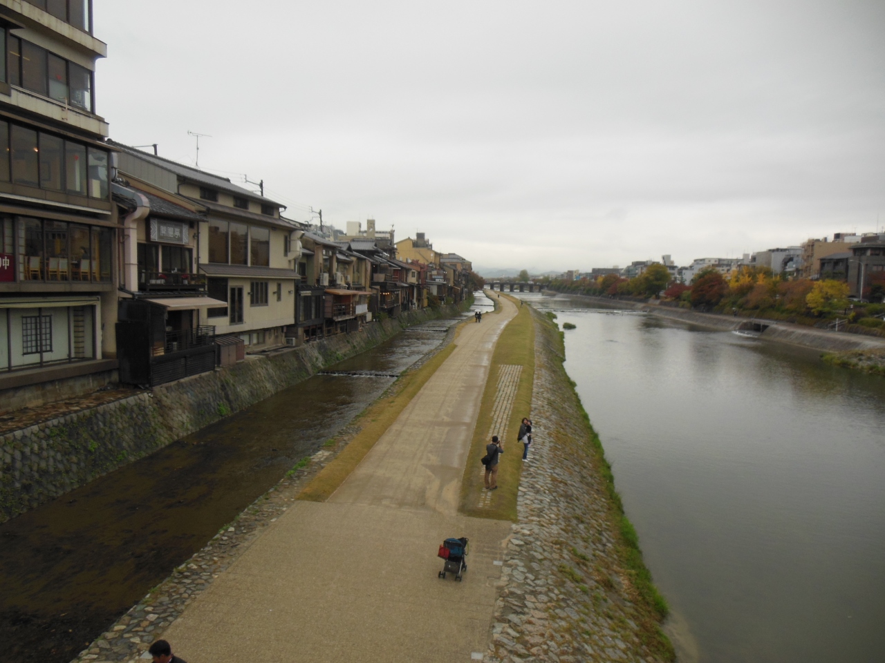 再訪。四条大橋から鴨川を眺めると整備された河川敷を散歩している人や、座って語り合ってる人など良く見かけます。春になると三条大橋から四条大橋の川沿いは桜がとてもきれいです。初夏になると川床がでて風情があります。