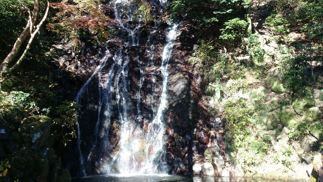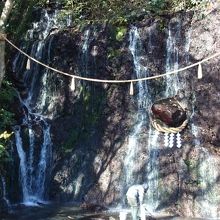 そしてその10mほど先に玉簾の瀧があります。この滝も同様に岩肌からわき出た水です。