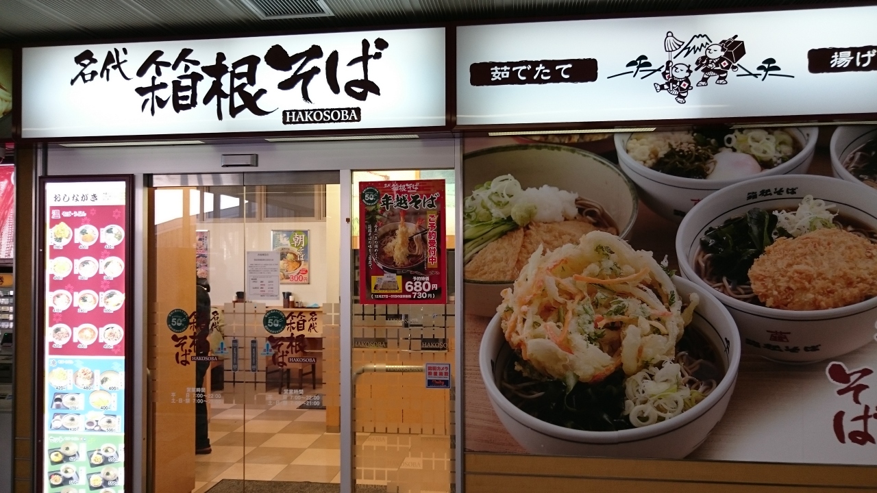 小田急線の新宿側の改札内にあります。お店が出来てからまだ数年なので店内はとても綺麗です。こちら側の改札口を利用する人が少ないので意外と空いています。味は普通です。天麩羅はかき揚げが美味しかったです。ただ切符がないと入れないのでその場合はバスターミナルにも箱根そばがあるのでそちらを利用するしかありません。