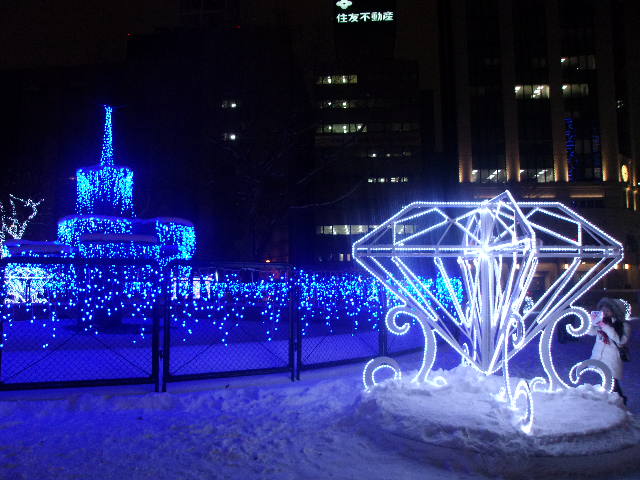 雪まつりと共に、ほぼ毎年比較のために訪れているイベントですが、2015年のホワイトイルミネーションは既存の流れからはガラッと変わった印象があり、長年定番で見続けてきたライラックやすずらん(は、2014年もなかったけど…)の電飾が遂になくなってしまいました。ミュンヘンクリスマス市の所にある、巨大な木みたいな電飾が、これまでの流れを汲む唯一のものとなってしまい、明らかにLED電飾がメインのブルーばかりのイルミネーションで、気持ちまでブルーになってしまいました。これからはさっぽろブルーイルミネーションと改名した方が良いかもね…、って、ちょっと寂しい気持ちになりました…。