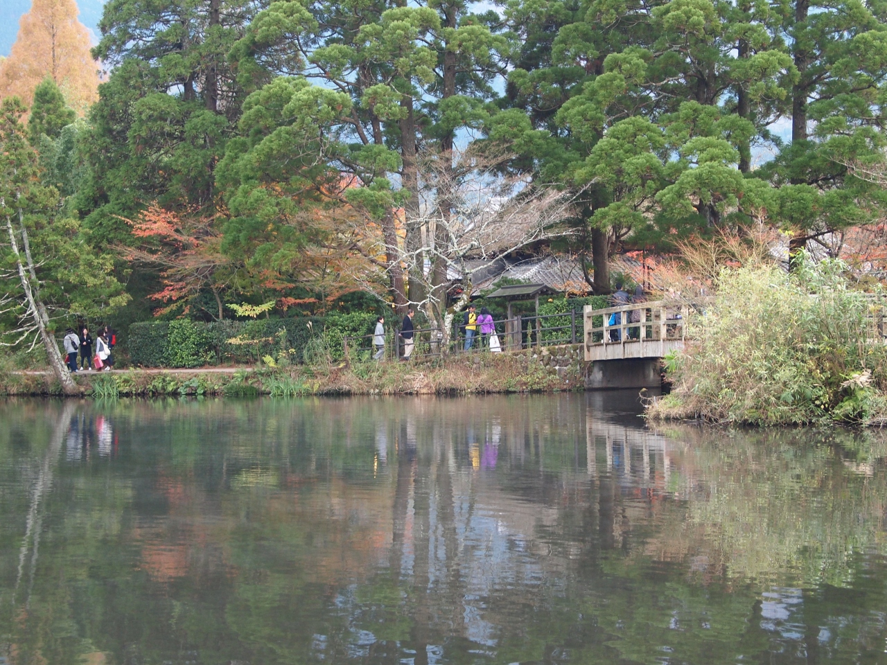 金鱗湖は湖底の一部から温泉と清水が湧き出る湖です。