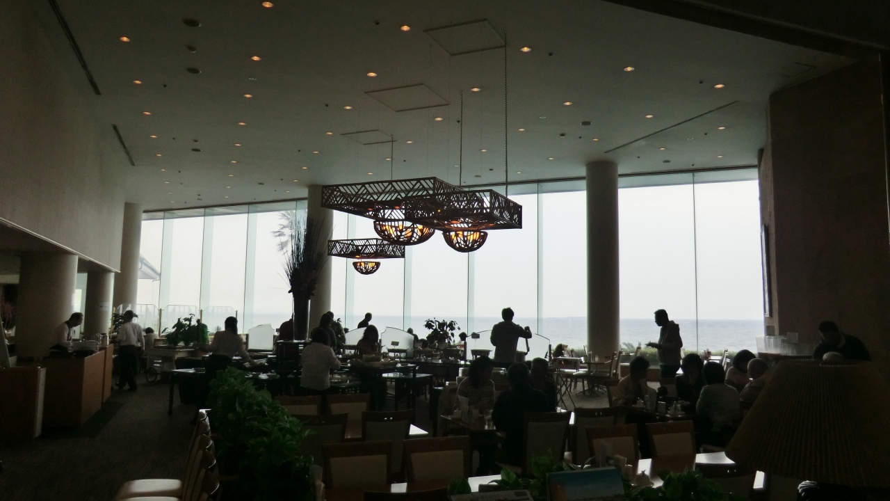 「浜木綿」は、京急観音崎ホテルのレストランです。京急馬堀海岸駅から観音崎行きのバスに乗って、15分ほど。観音崎京急ホテル前で下車です。レストランの大きな窓からは、東京湾がよく見えます。「海軍カレー」を注文、口当たりはフルーティですがなりスパイシーです。パイナップルや牛肉も大きく食べ応えがありました。牛乳がついています。