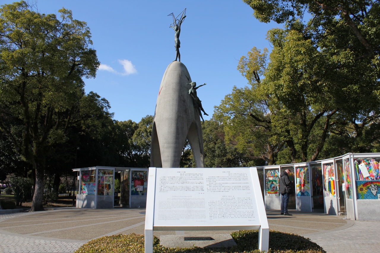 平和記念公園に来て、原爆死没者慰霊碑で手を合わせ、原爆ドームに向かう途中にありました。戦後しばらくたってから原爆による病気で亡くなられた子供さんのために立てられた像で物凄い数の千羽鶴が送られていました。