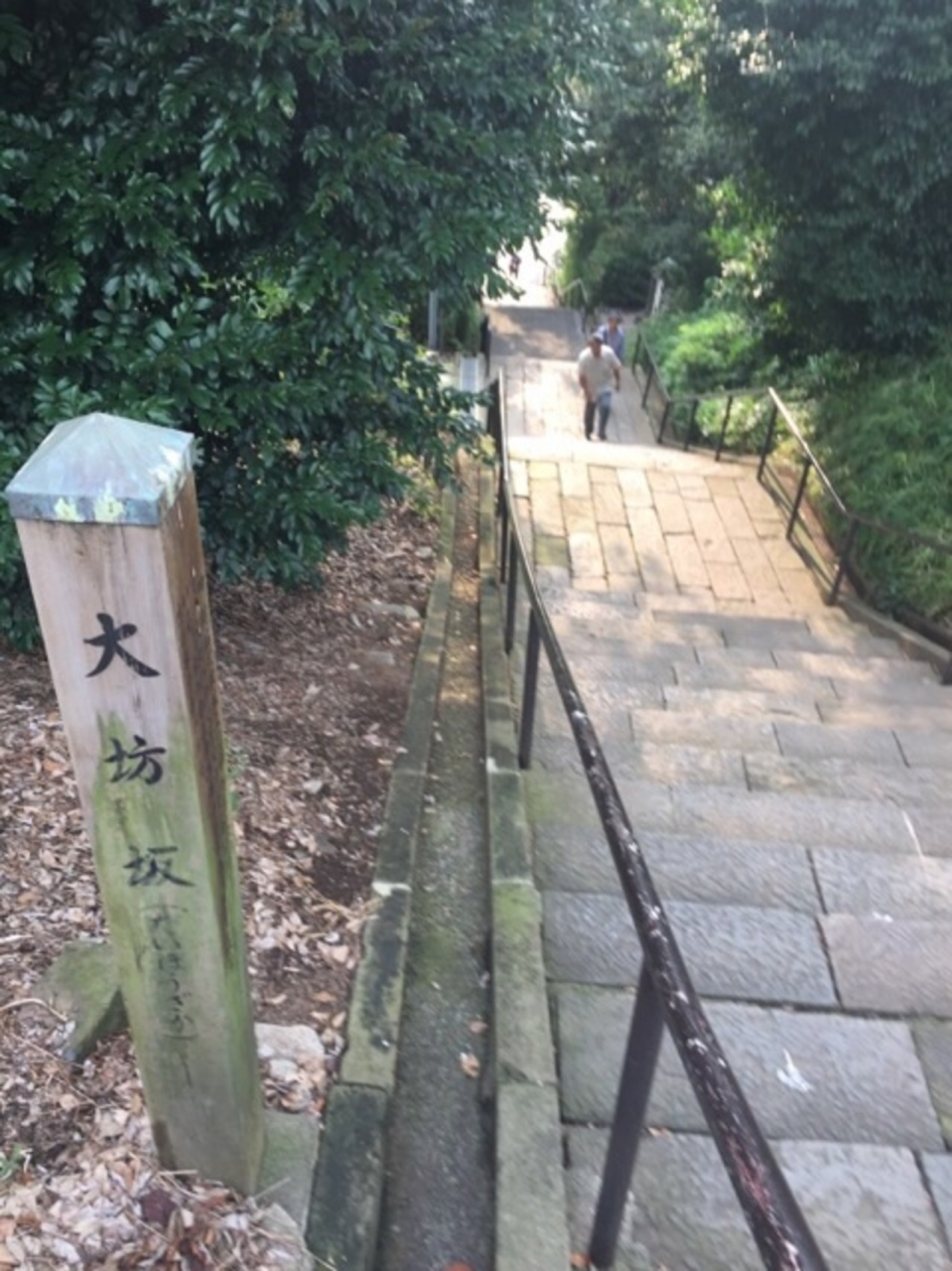 結構急で狭い坂道で、坂の途中には多宝塔や墓地などがあり、少し暗い雰囲気ですが、独特な感じの坂です。