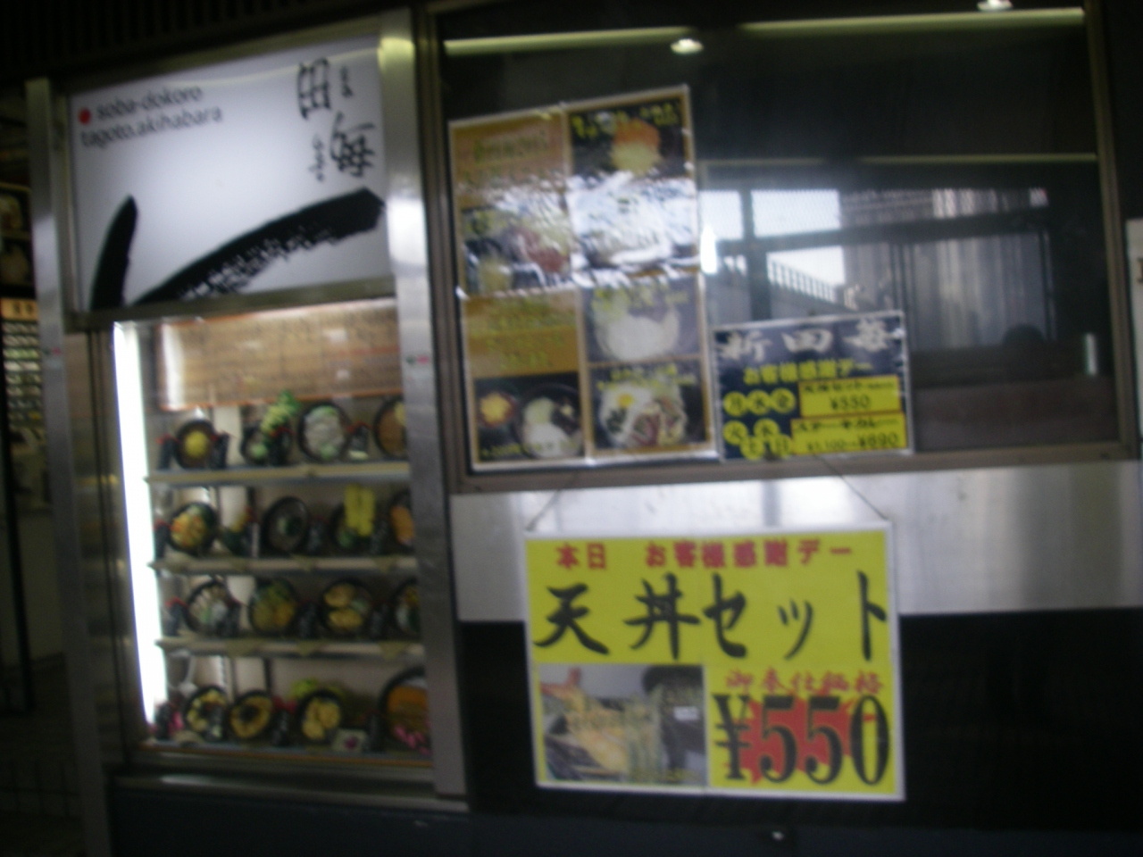 JR秋葉原駅の総武線ホームから山手線ホームに向かう際にある立ち食いソバのお店です。