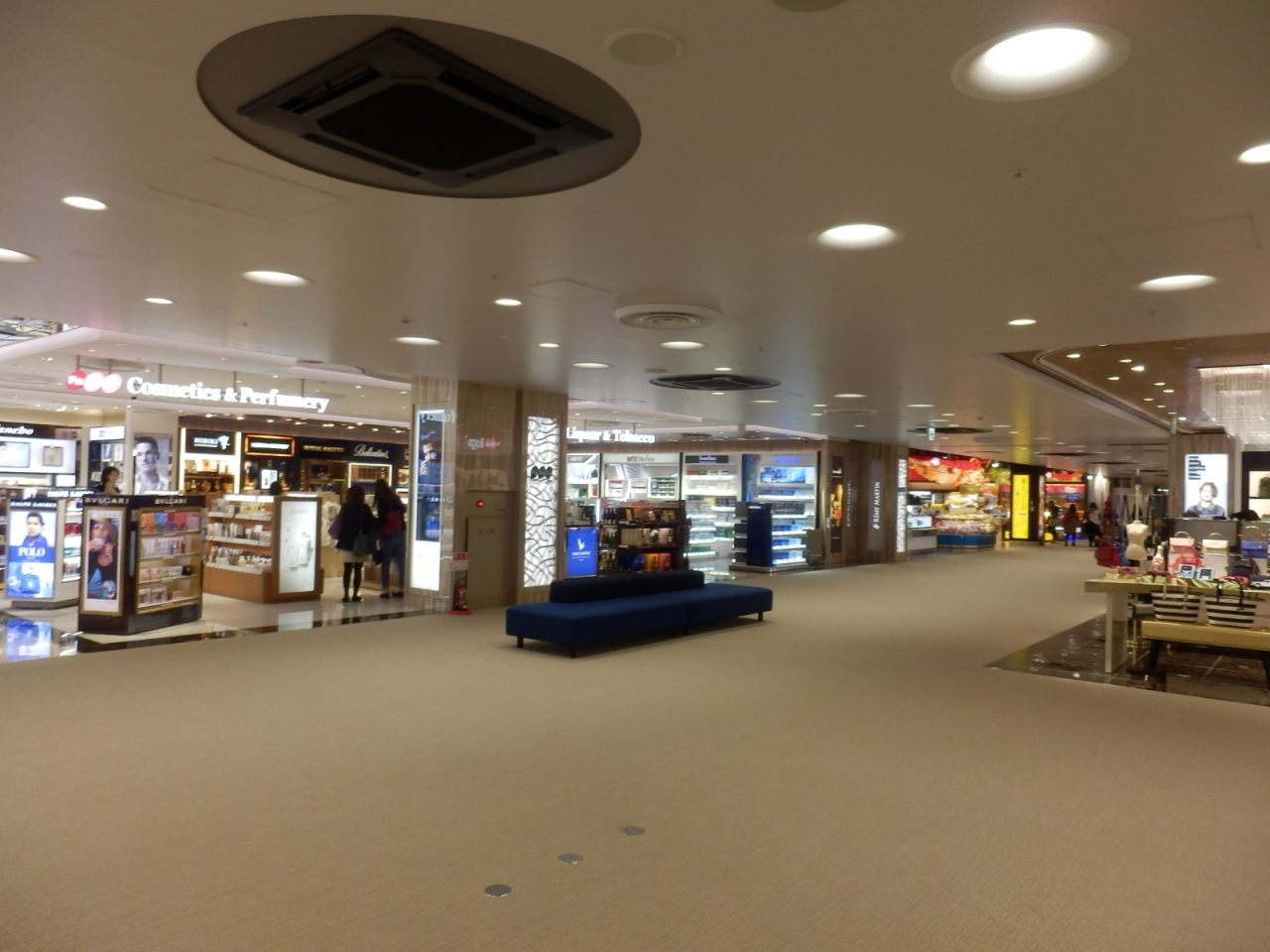 チェックインカウンターを抜けると、広大なフードコートがあって、どのお店もリーズナブルで良かったです。国際線はその右奥に手荷物検査、出国審査があり、搭乗口へも近かったです。出国後は何もないと思っていたら、免税店も意外と広くて驚きました。