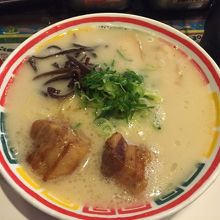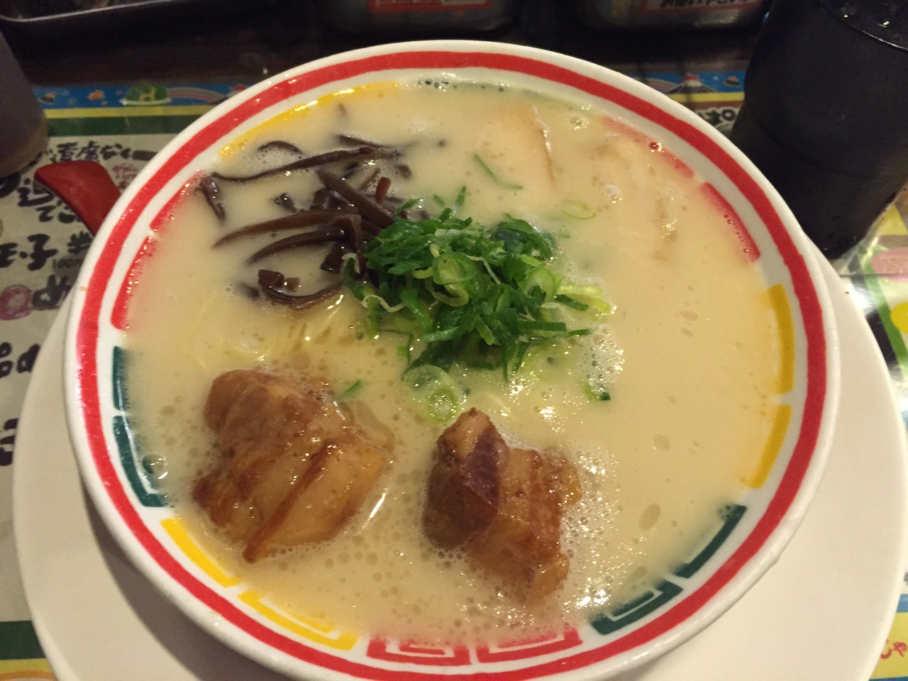 数年ぶりに食べた。感想は、、、。麺が柔らかめで歯ごたえがなかった。それに中細で博多ラーメンの麺ではない。スープは昔の豚骨風で味が変わってないが。